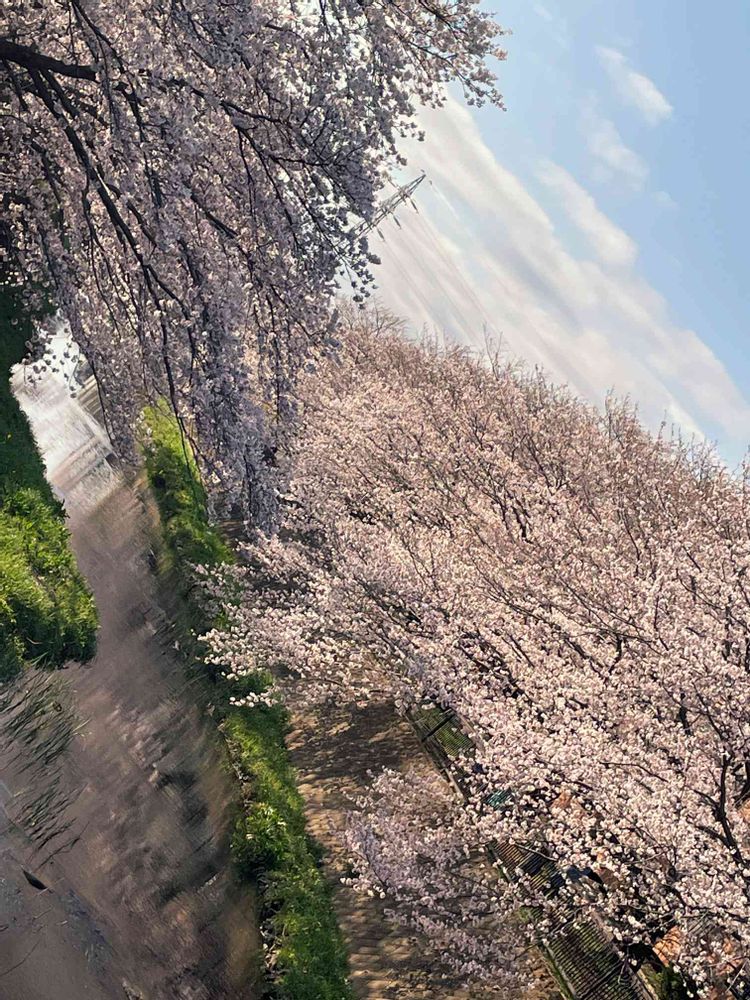お花見🌸🌸🌸🌸🌸散歩 昨日の人出に桜見物をしながらあーでも無い こーでも無い スマホを📱立てたり斜めにしたりズームで建物を入らないように🤭👍川と空は入れたいよね ウン(≧∇≦)/ 遠近感と 日向と日陰 よーしオッケー🤭👌