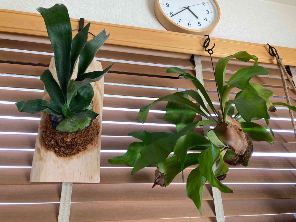 昨日の板付けにしたビカクシダと苔玉のビカクシダ、並べて眺めるのが夢でした🫶