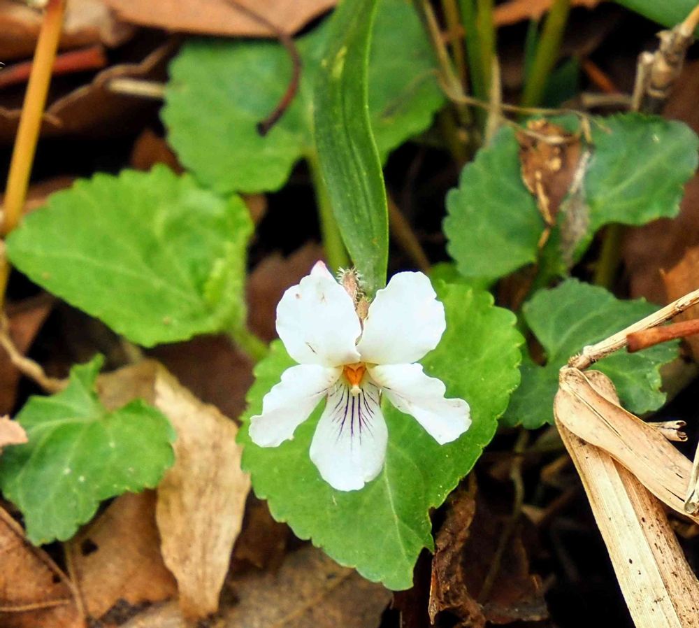 ここの自然園では、マルバスミレと、ニョイスミレの二種類が白い花弁のスミレさんでした。