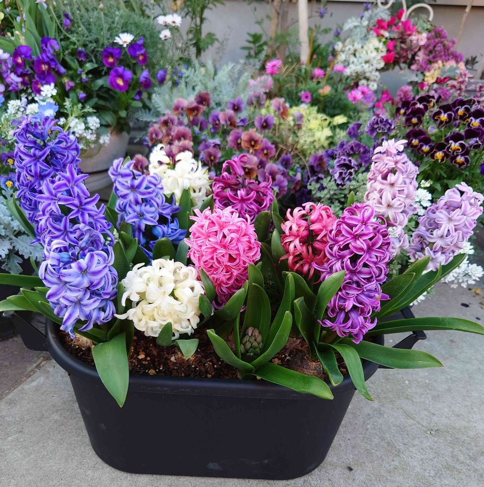青系混合6球とピンク系混合6球を植えたけれどピンク系に関しては概ねパッケージどおりピンク赤系の色んな色が入っていてうまくグラデーションができました