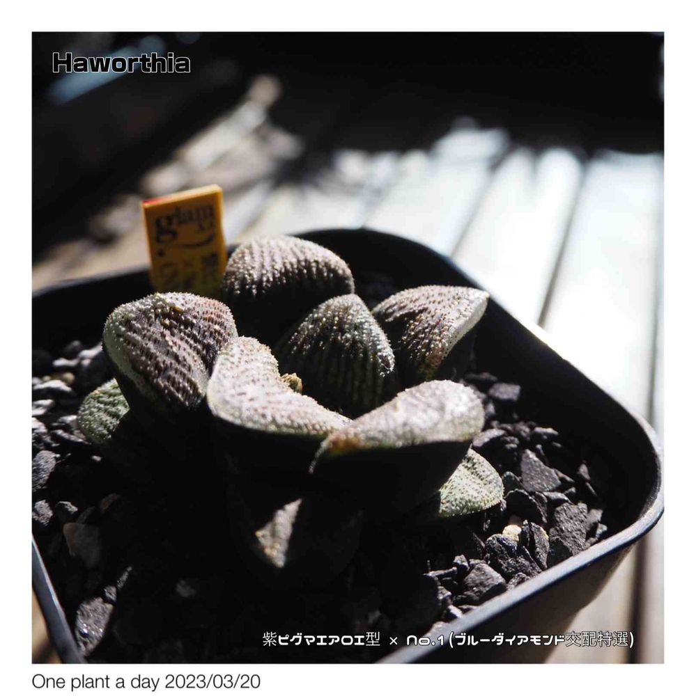 Haworthia 紫ピグマエアOI型 × No.1(ブルーダイアモンド交配特選) from @glam.s.s_kuro