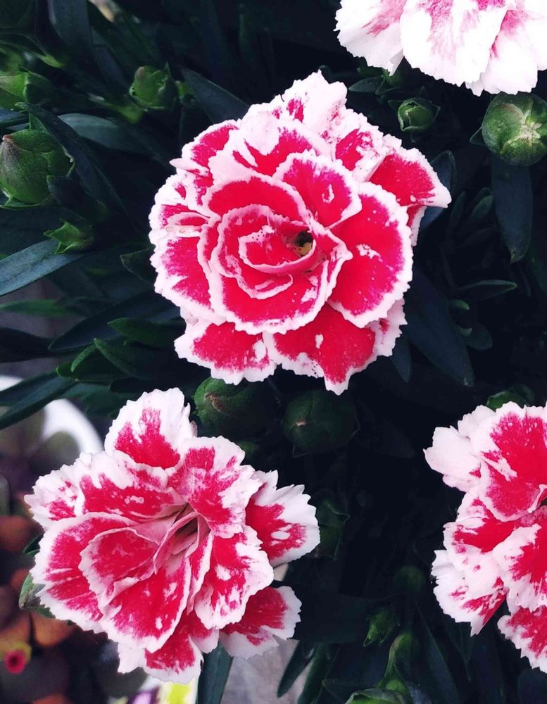 我が家は真っ赤なダイアンサスです。ひとつお花が咲きました😍💕