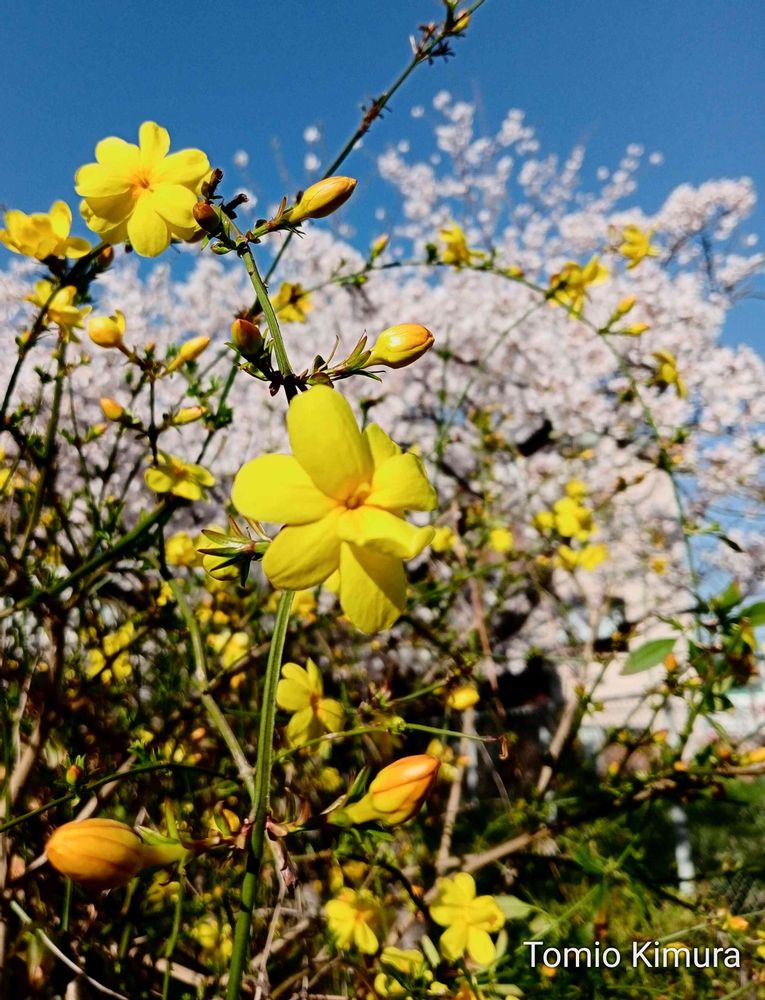 ソメイヨシノと黄梅です。