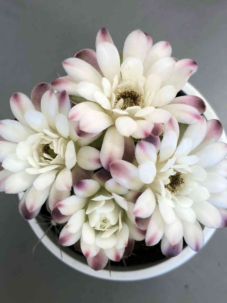 サボテンの花って、赤、ピンク、黄色のイメージだけど、これ可愛い😍