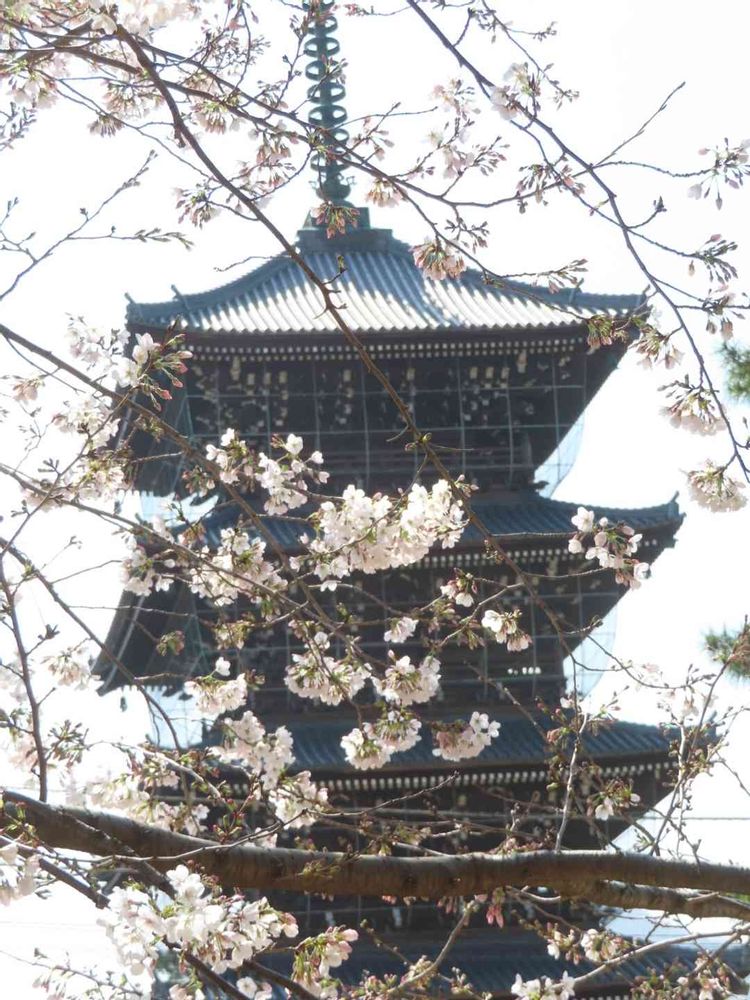 5分咲きの染井吉野と五重塔が素敵なコラボを見せてくれました。