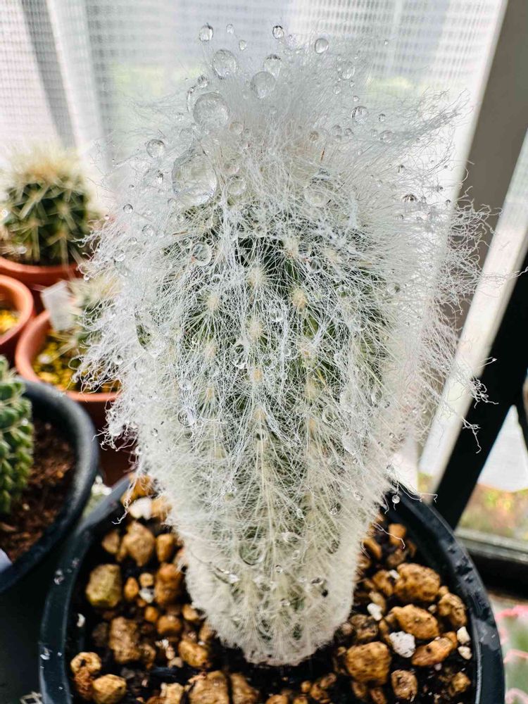 ふわっふわなのに頭から水やりしてしまい水滴が水晶のように煌めいてました🫧