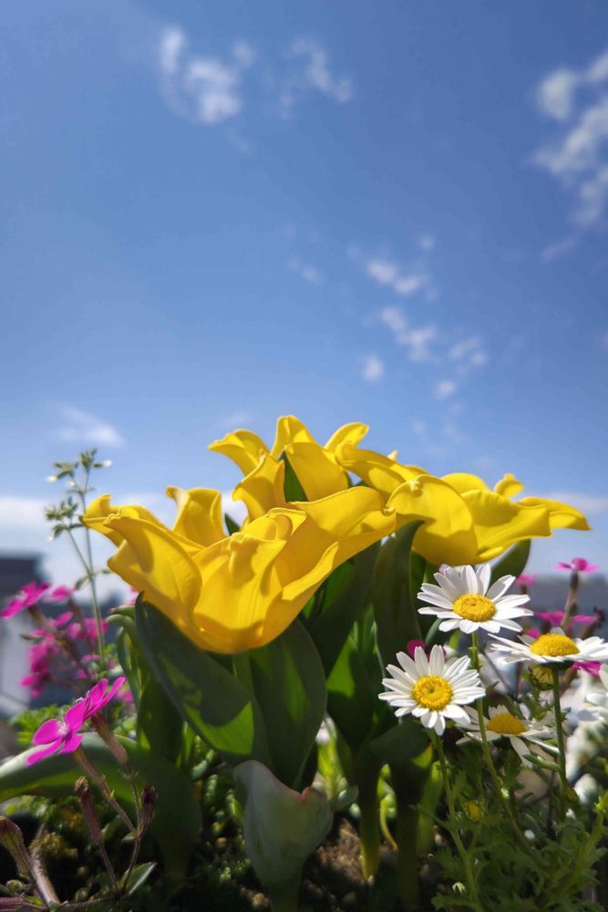 同居人と一緒に青空に向かって🌷🌷