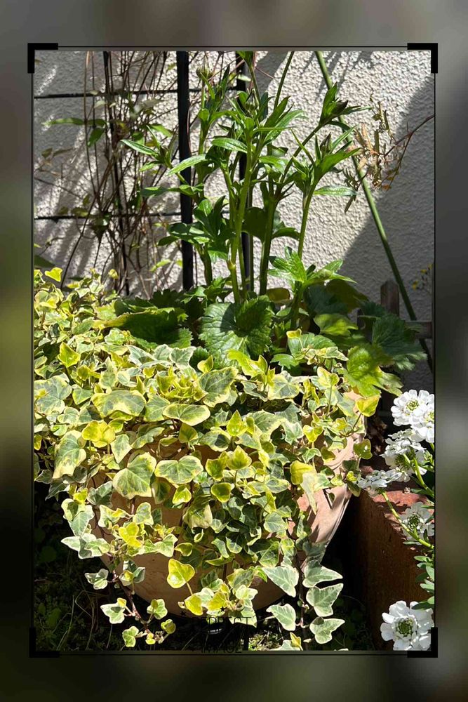 3年前の寄せ植えを放置していましたが 今年も へデラとラナンキュラスラックスだけが元気です🤗