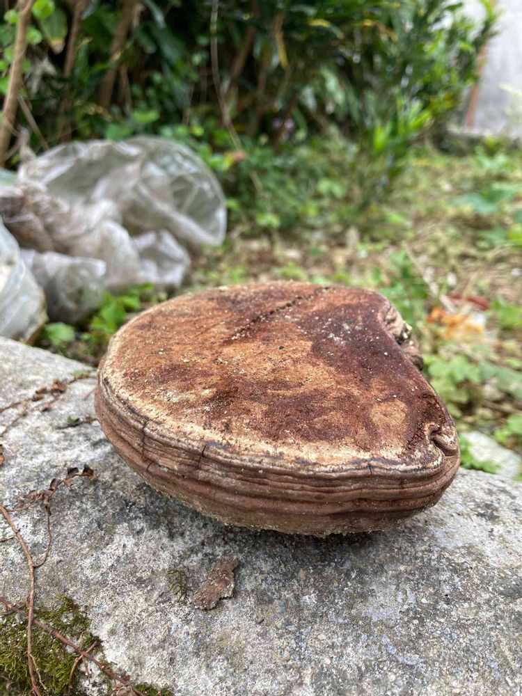 隣の古家と敷地内を一部解体したところ〜桜の古木に付いてたサルノコシカケ🟤