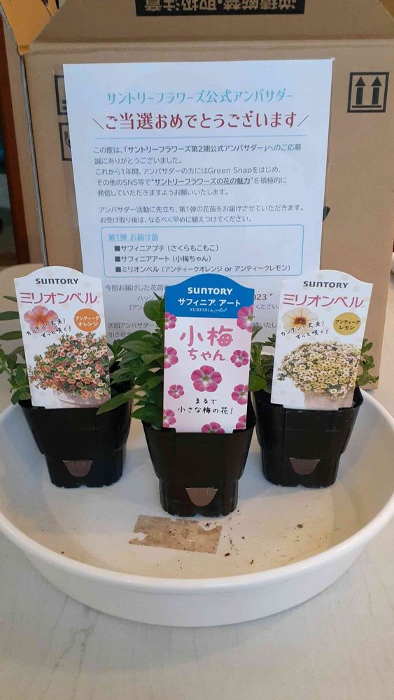 サントリーフラワーズアンバサダー2023の苗が届きました😃でもちょっと違和感があり確認をしたら、さくらもこもこちゃんが居ない😱