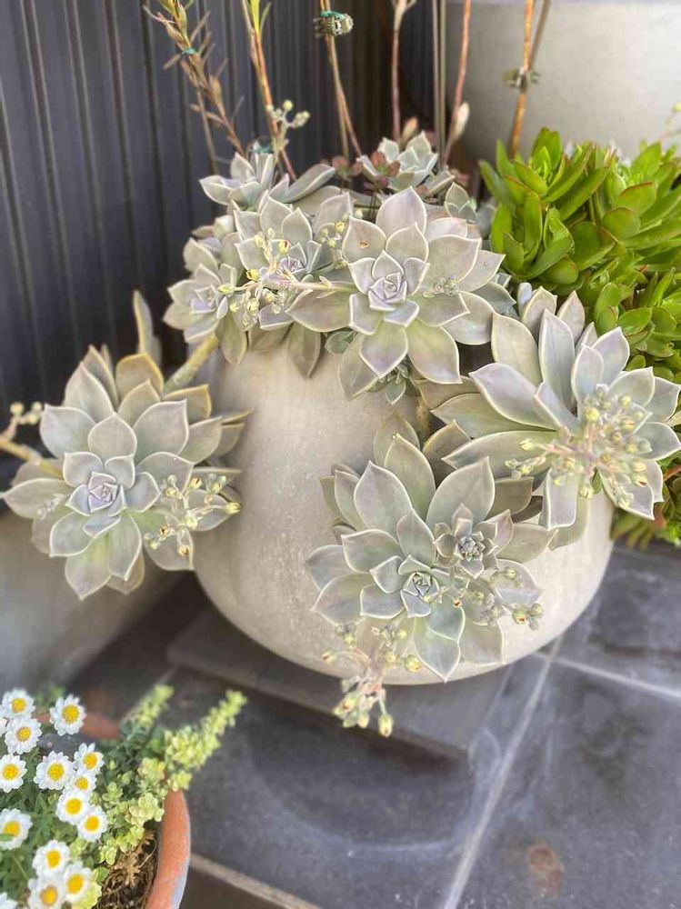 たくさんの❤︎ありがとうございます😊この鉢(セメント鉢?)のメインはリューカデンドロンなんですが、朧月が足元で立派になりました。植える前にイメージした通り暴れてくれて気に入っています❤︎