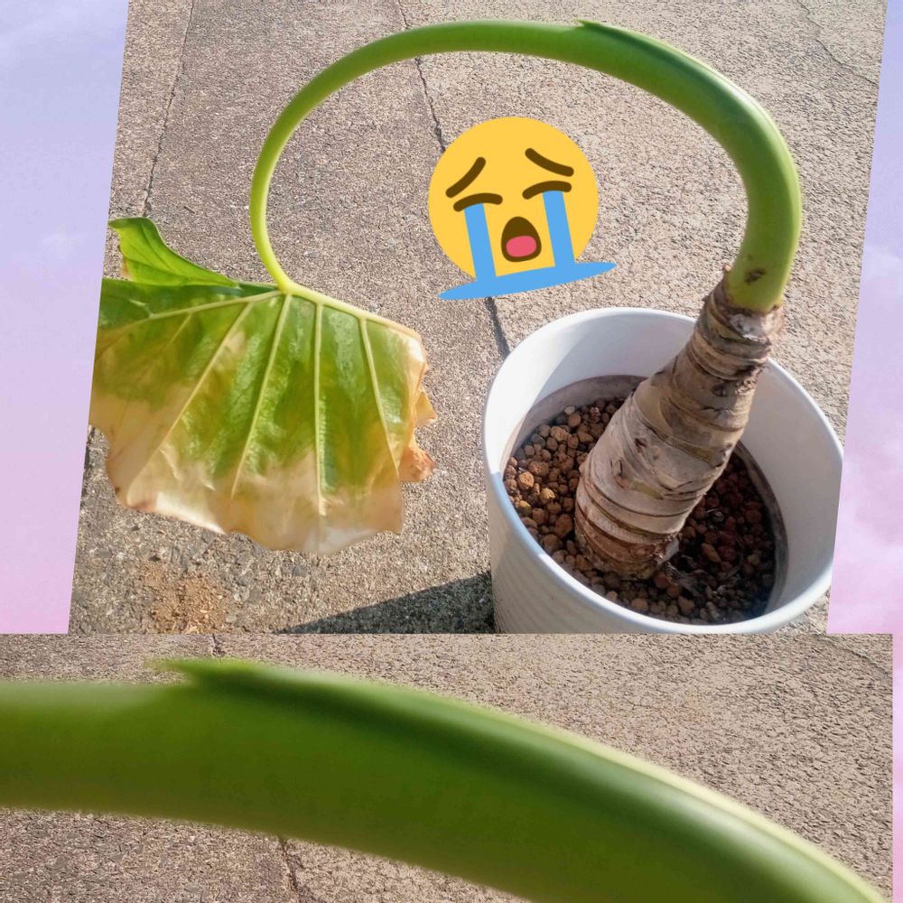 ちゃん🍠😓😓😓ニ枚の葉っぱを折ったら、こんな姿に😱😱😱でも復活できそうで😅頑張れクワマン🍠💦💦