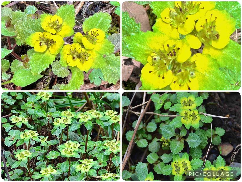 これは鉢植えにもしてあったし、沢筋(トイレの横)にもたくさん咲いてました😍「ニッコウネコノメ」ですね。