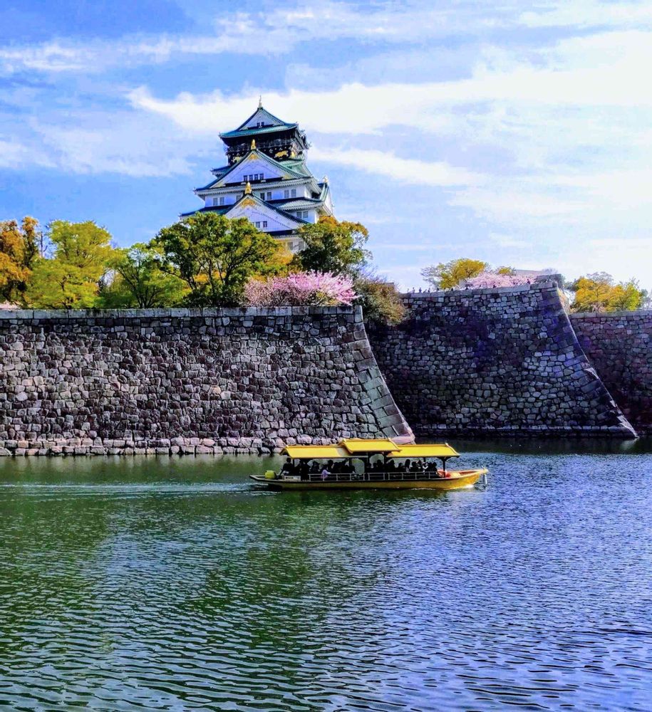 大阪城のお堀を観光船がゆっくりと通り過ぎてゆきました。