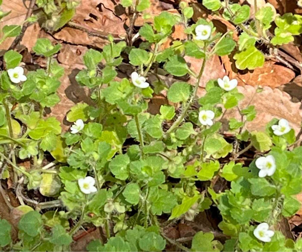 コゴメイヌノフグリ。オオイヌフグリより小さくて白い花です。これも東大構内で見つけました。