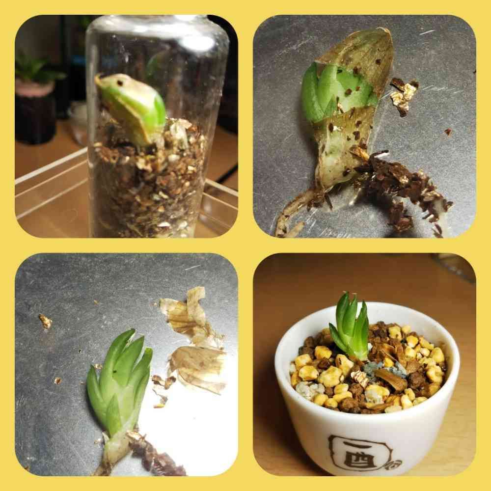 一粒(1葉)を植えていたら、中で葉を造っていた。脱皮して出てきた‼️😃