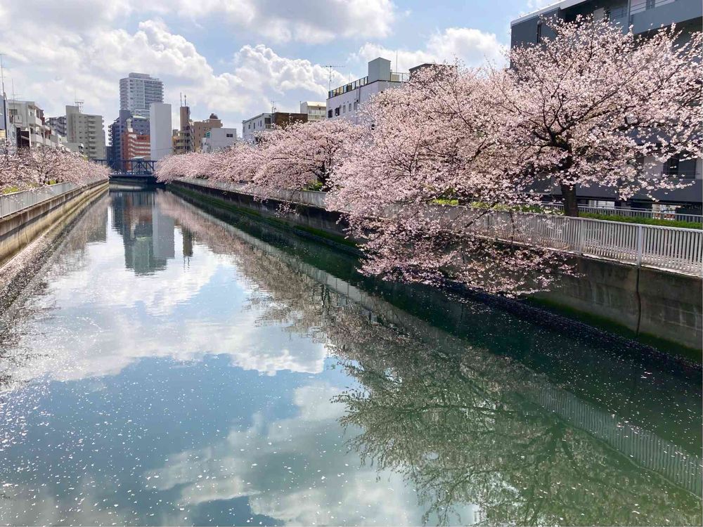 川面に映る空と桜🌸が美しいですね💕