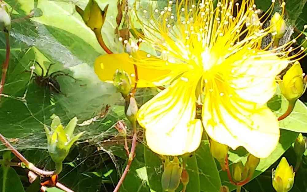 火曜日に本牧山頂公園入り口に咲いてたビヨウヤナギにてんとう虫🐞と蜘蛛🕷️