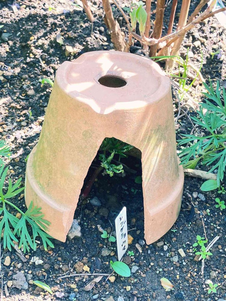 冬に枯れてダメだと思いながらココに植えたのよ。そしたら芽が出てきてびっくり。