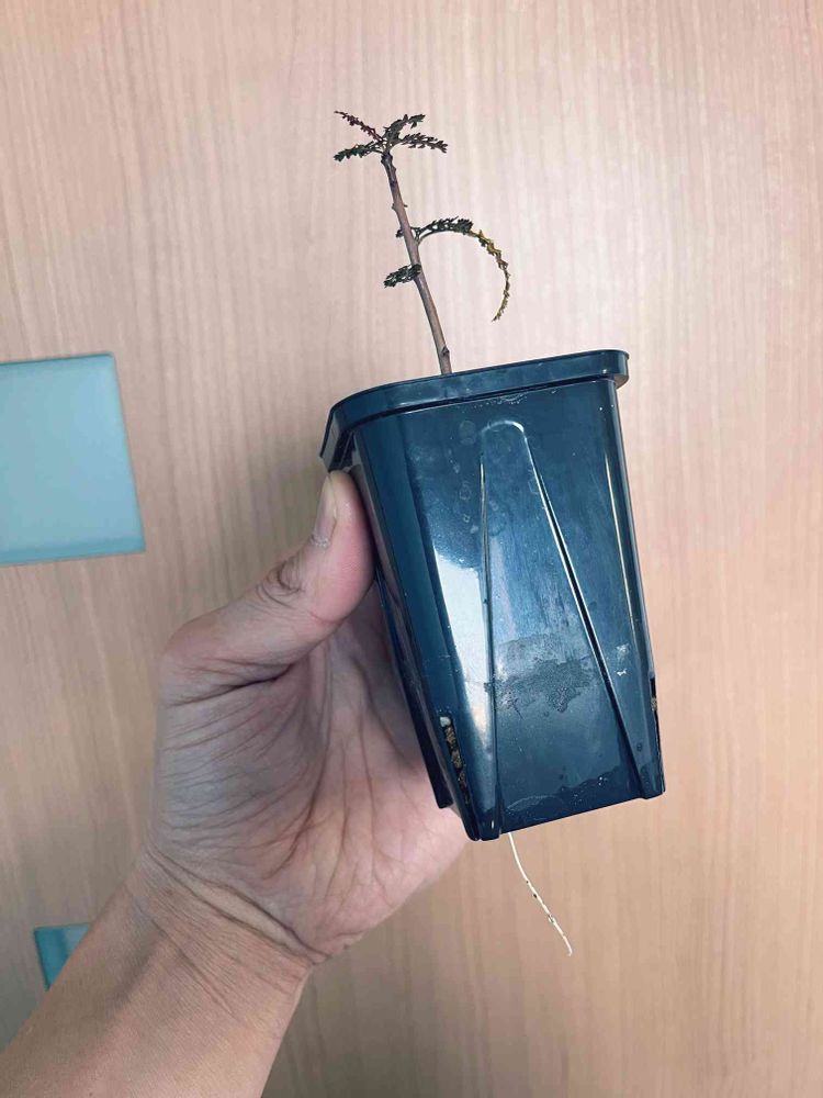 1月中旬にカットして挿し、遂に鉢底空いい根👍が出て来ました😆