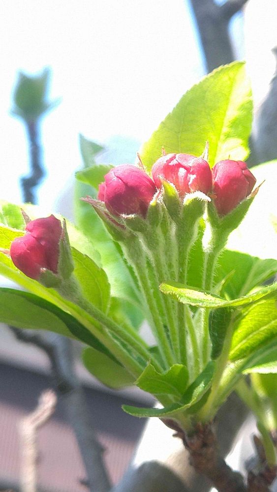ヒメリンゴにも、やっと蕾が付きました。