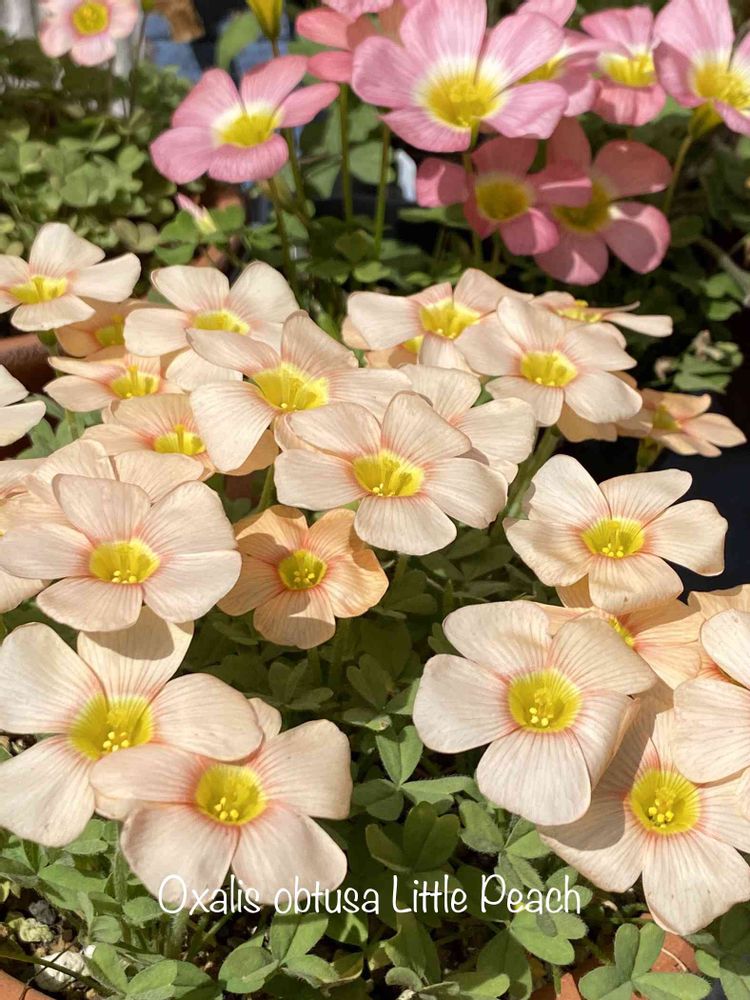 オキザリスを中心に、小さな庭で花を楽しんでいます。