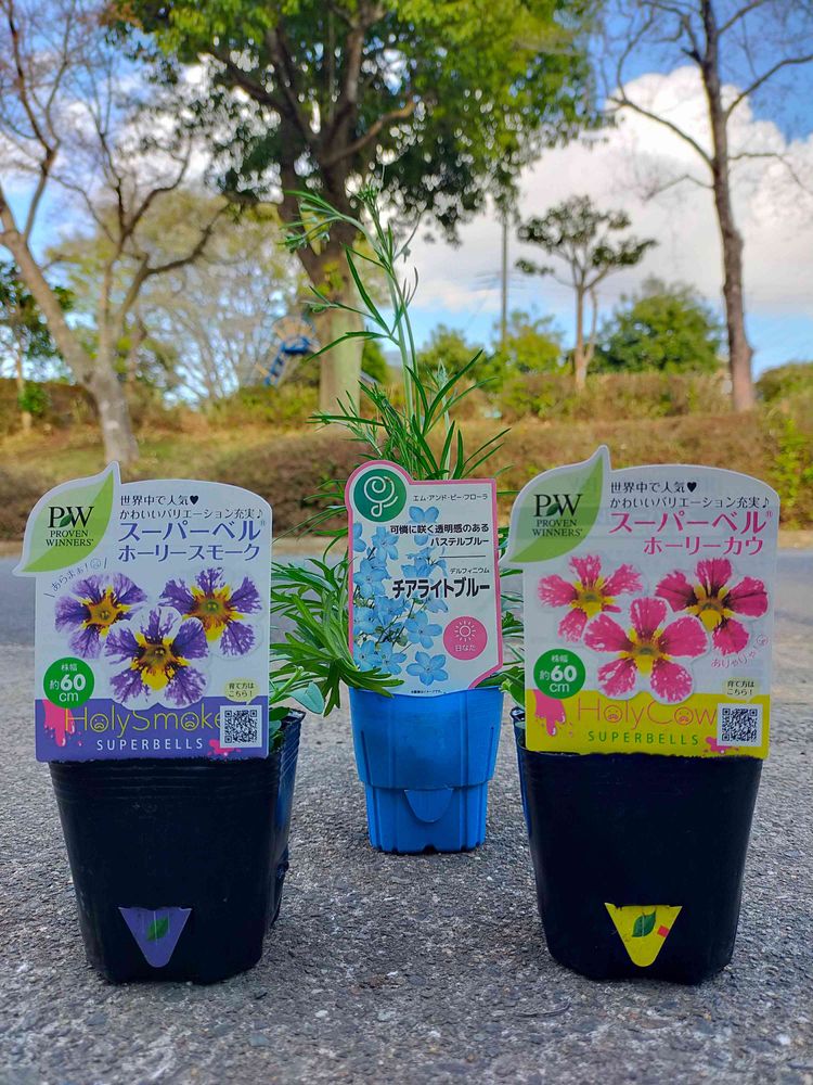 少し遠方の園芸店さんに🚙💨1時間かけてスーパーベルのホーリーカラー🌱🌱を買いに行ったら欲しかったデルフィニウムのチアライトブルー🌱にも出会えて大満足です✨🥰✨