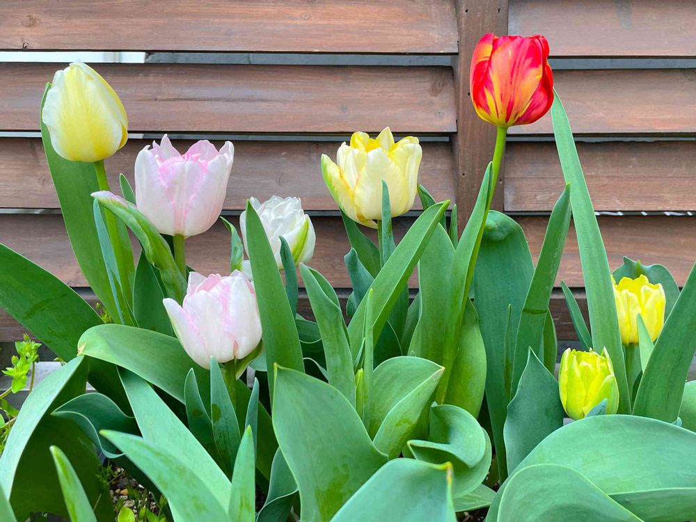 咲くまで何色になるか分からないミックス植えのチューリップ🌷なかなか良いバランスでした😉
