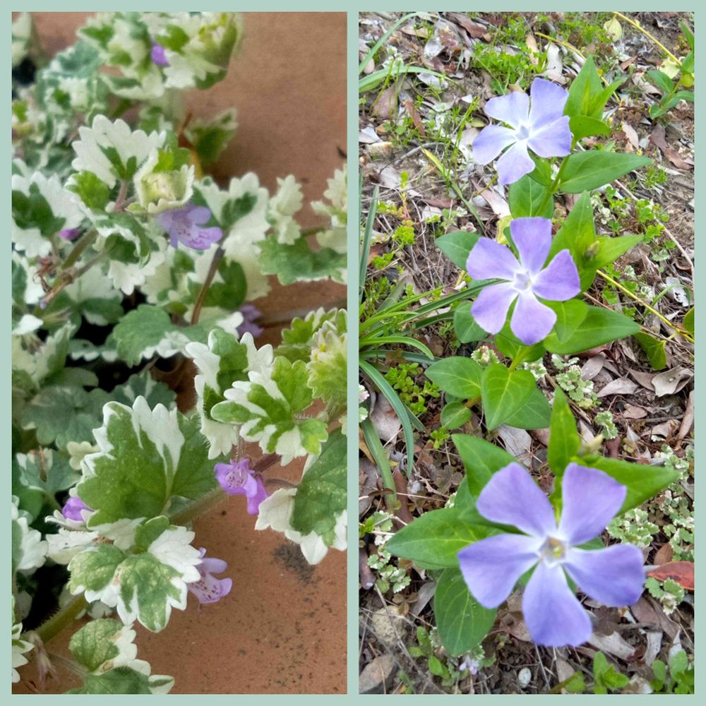 ツルニチニチソウ、もうお花が咲いてるのね〜💙青くて可愛らしいですよね〜。