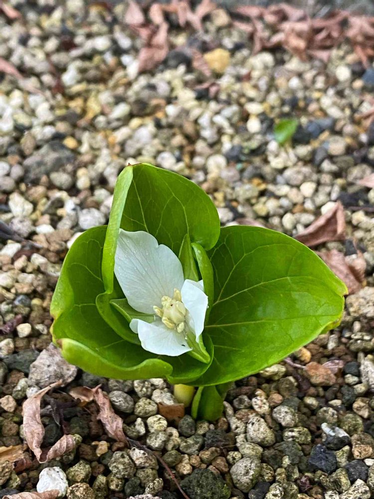 花壇の深山延齢草(ミヤマエンレイソウ)が咲いちゃいました💦