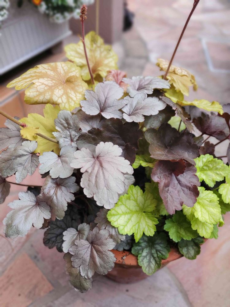私もヒューケラ大好きで、あちこちに株分けして植えてますが、寄せ植え良いですね**(ू•ω•ू❁︎)**♡︎