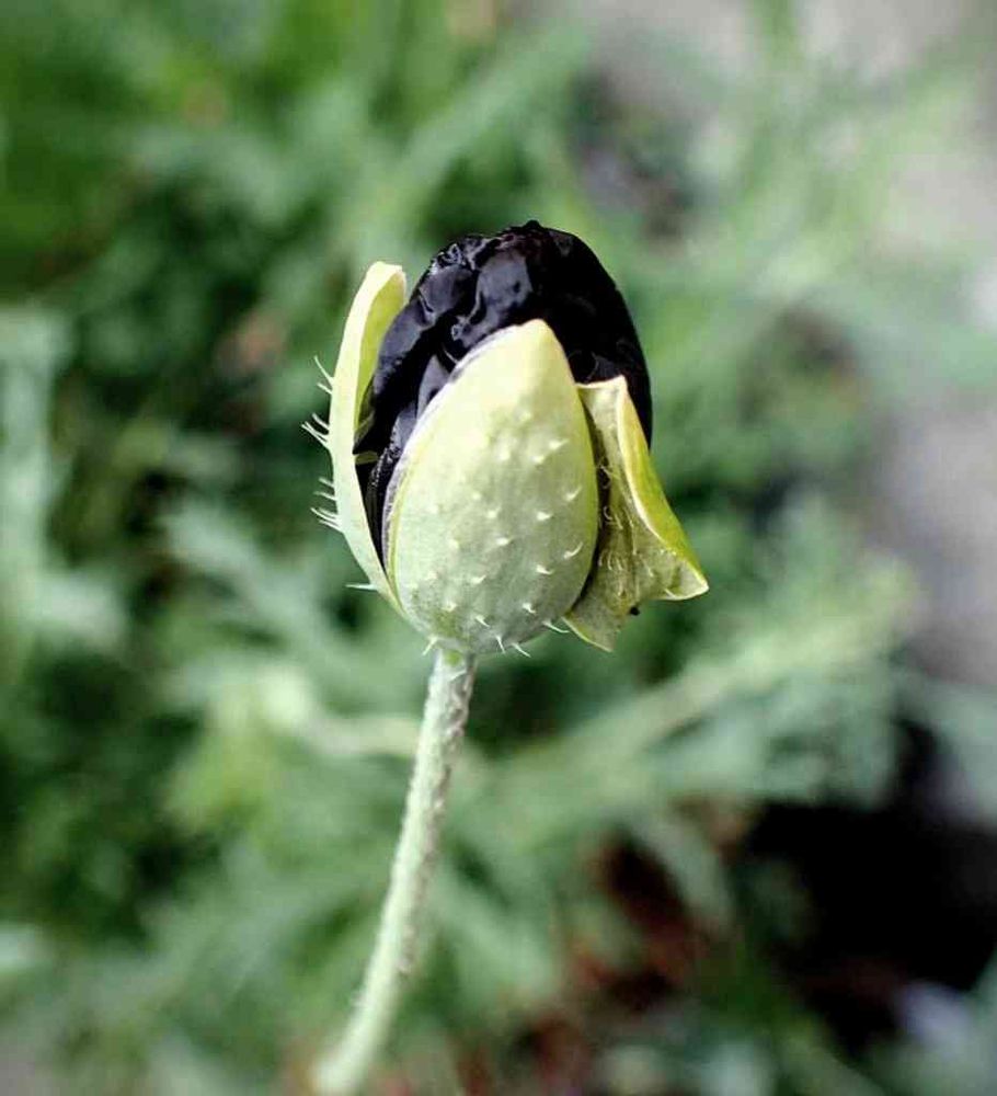 黒いボビー・ブラックマジック(Papaver macrostomum ‘Black magic’)の蕾です😊とても小さくて、ナガミノヒナゲシに似た姿ですね、可愛いです🖤😍