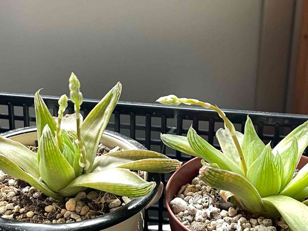 右の花芽ちゃん 左の鉢に興味があるのかな?覗き込んでるね( *´艸`)