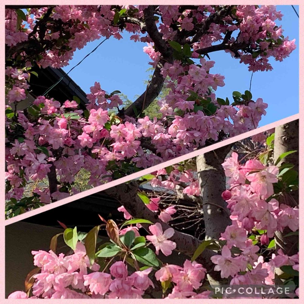 ご近所の花海棠、ちょっと見るのが遅くなったらもうこんなに開いていました〜