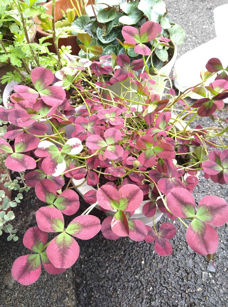 先日行った鶴見緑地の植木市で、綺麗な色に思わず購入しました、お花も咲くようですが、四つ葉のクローバーと同じ白い花?
