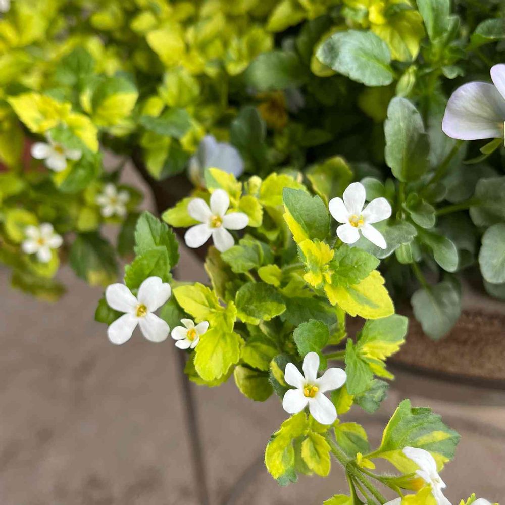 寄せ植えのバコパに小さい白い花が🥰🎉