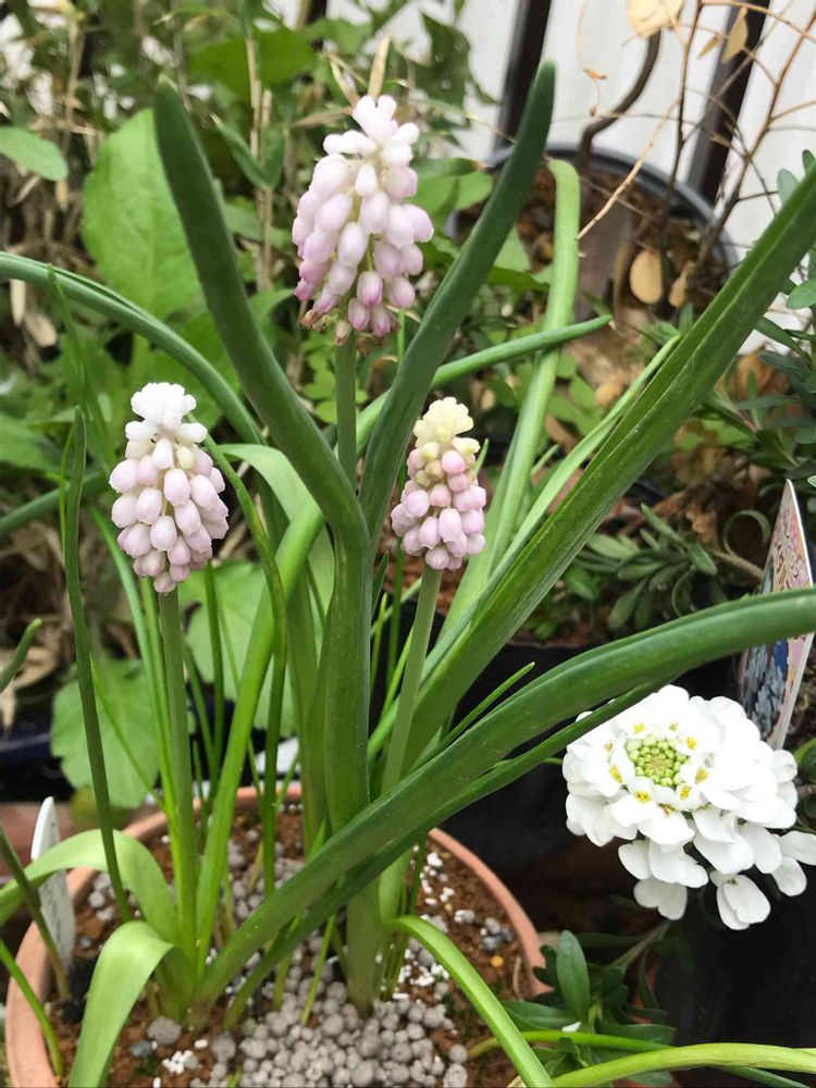 バルコニー/ベランダ,ムスカリ ピンクサンライズ,イベリス ブライダルブーケの投稿画像