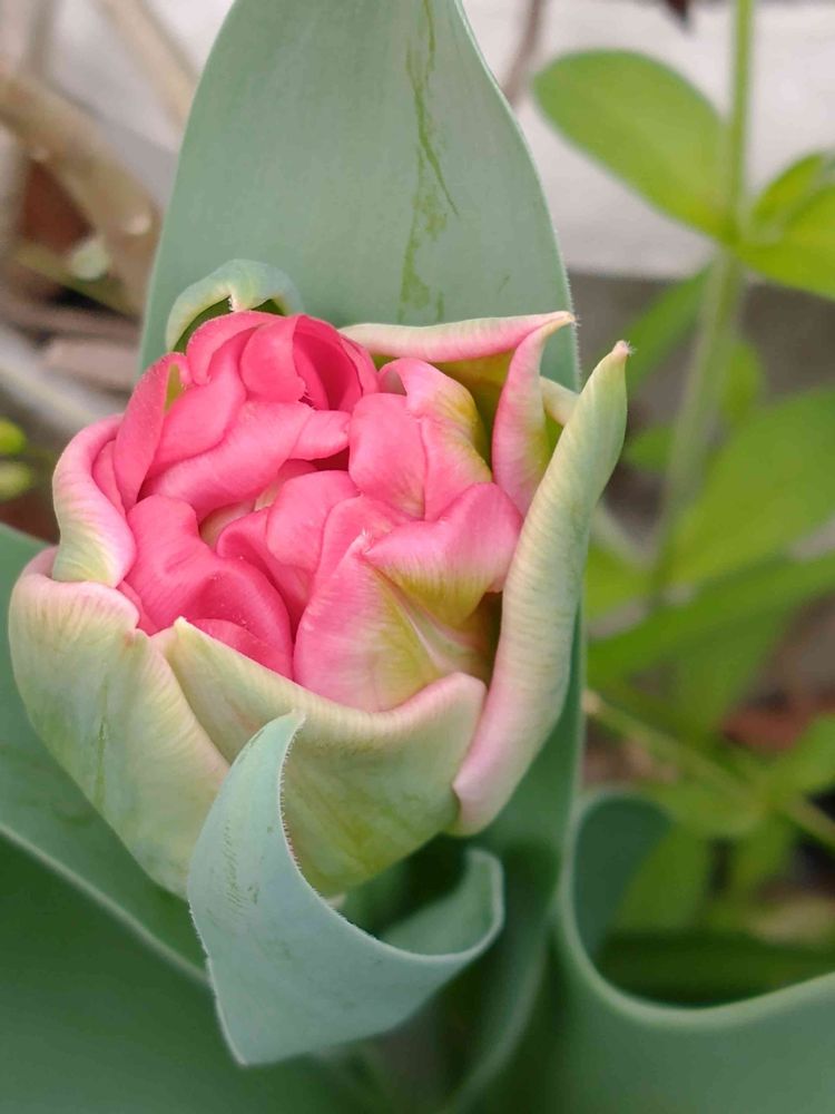 昨日まで何色かわからず〜このくらい開き始めた🌷も好きよ ワクワクして〜💓