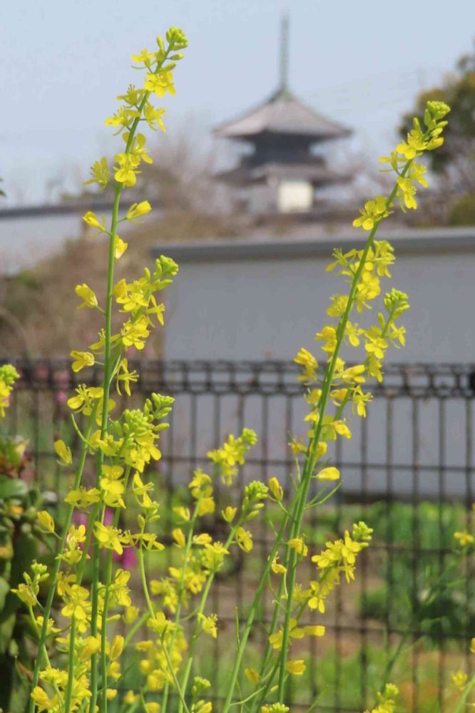 ほんわか咲く菜の花💛の向こうに五重塔が…穏やかな春を感じる光景ですね😍