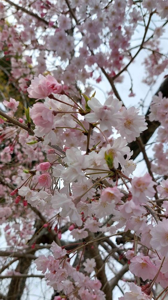 もう枝垂れ桜か八重桜かの区別しか出来ませんが 蕾と花びらの色とヒラヒラを楽しんでいますよ☺️