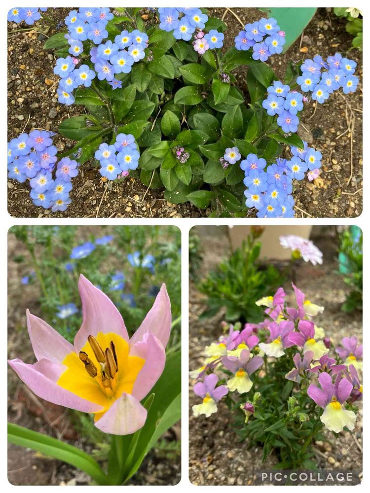 ネモフィラ花壇には原種系チューリップを植えているのですが、そのうちサクサティリスが初開花しました🌷ネモフィラはびよんびよんですが次々に花を咲かせてくれています👍