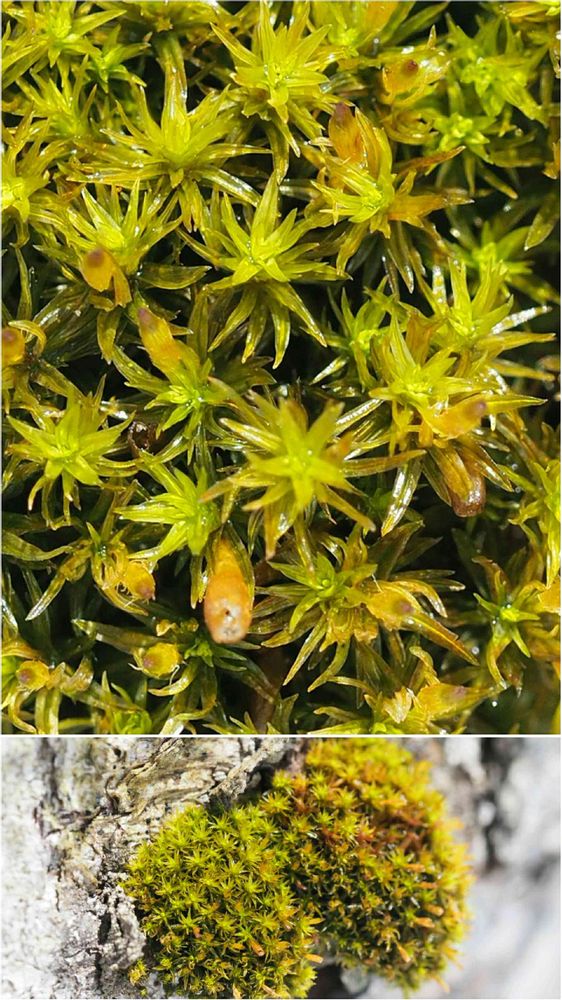 スキー場広葉樹の樹幹に居たカラフトキンモウゴケ。