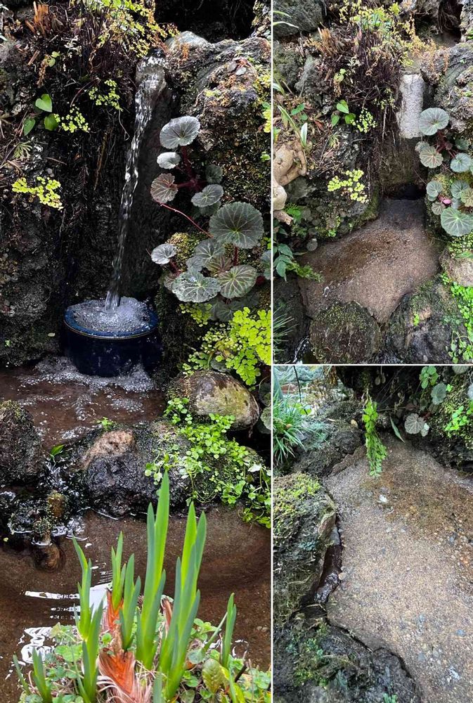 岩と施行した境目から経年劣化で漏れだして周囲の植物にも潤いを与えていた模様😂