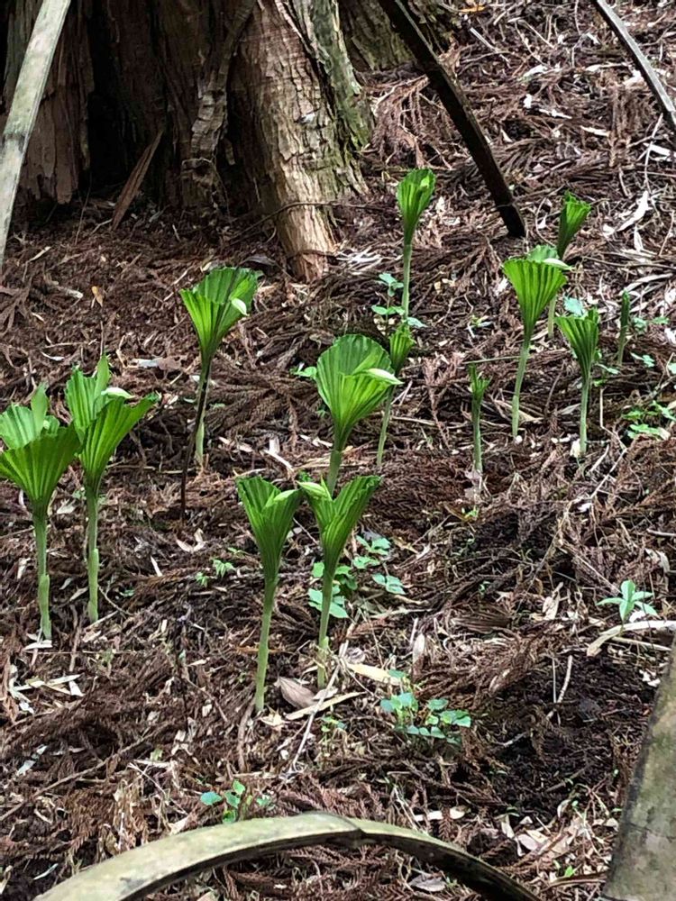 自然の森の竹林の中、大事に保護されているクマガイソウ🌿