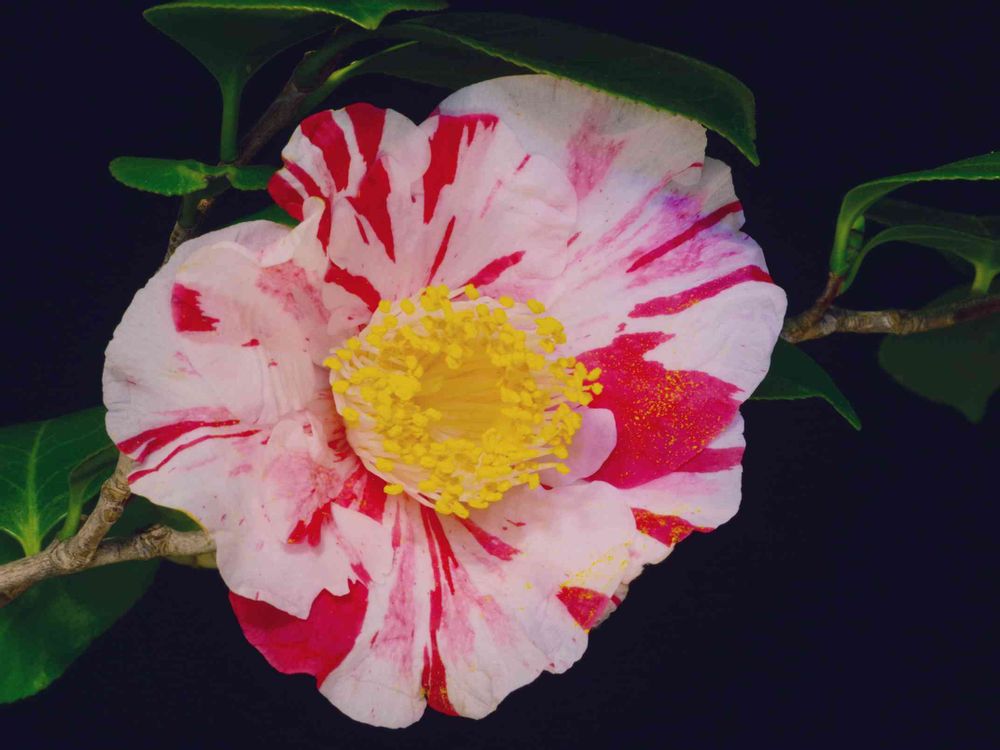 江戸椿・白地に赤の縦筋模様が、綺麗
