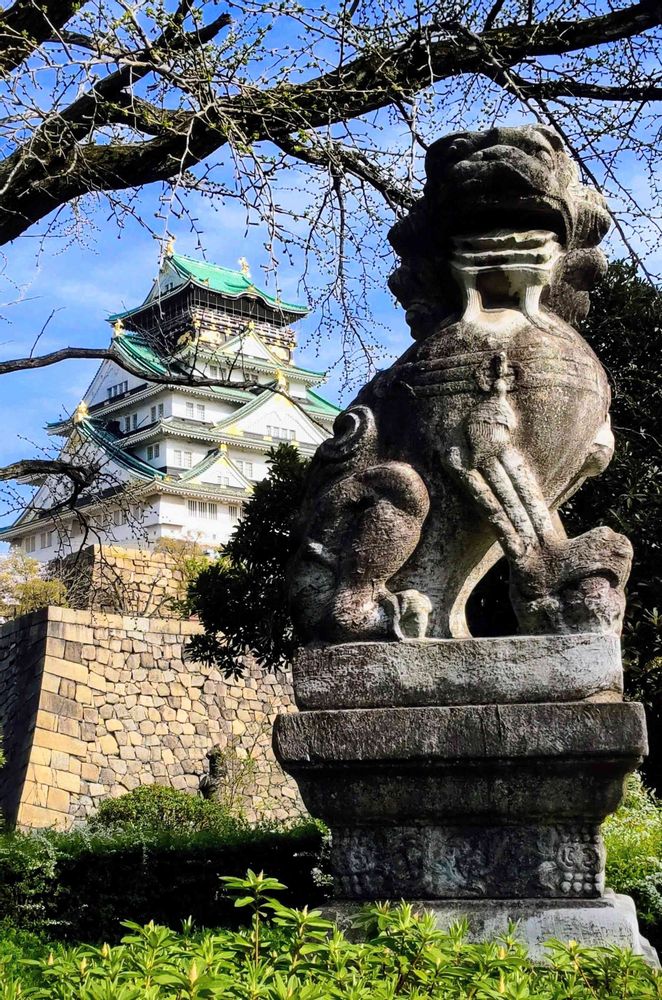 日中友好のため大阪市に寄贈された明代の中国狛犬と大阪城