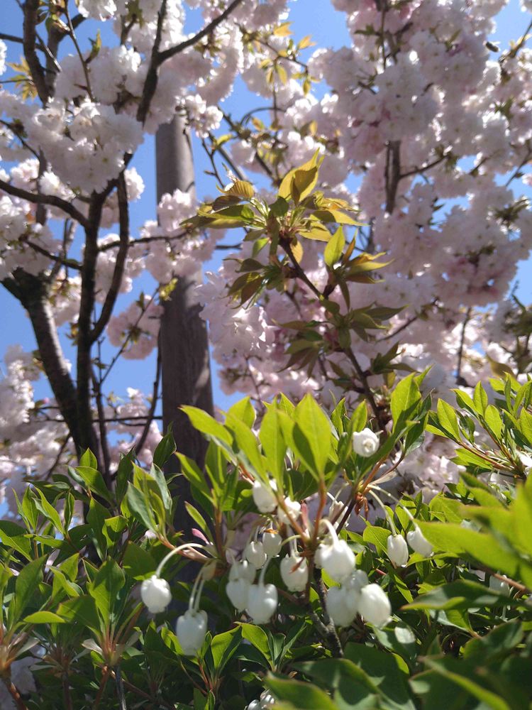 八重桜をバックに可愛い花を咲かせてくれました😆✌️