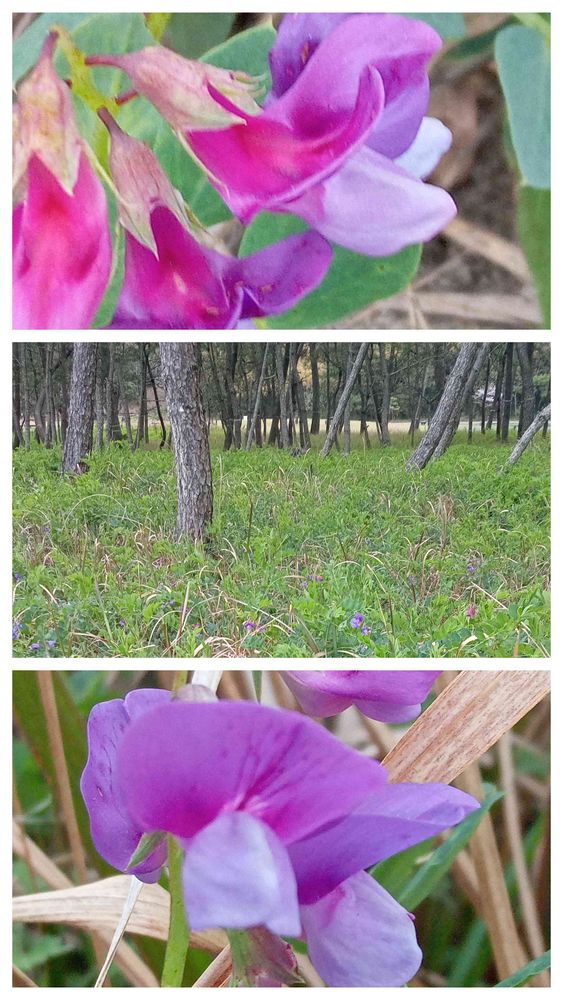 海散歩 浜辺の樹間はハマエンドウに埋め尽くされています❤️🎵