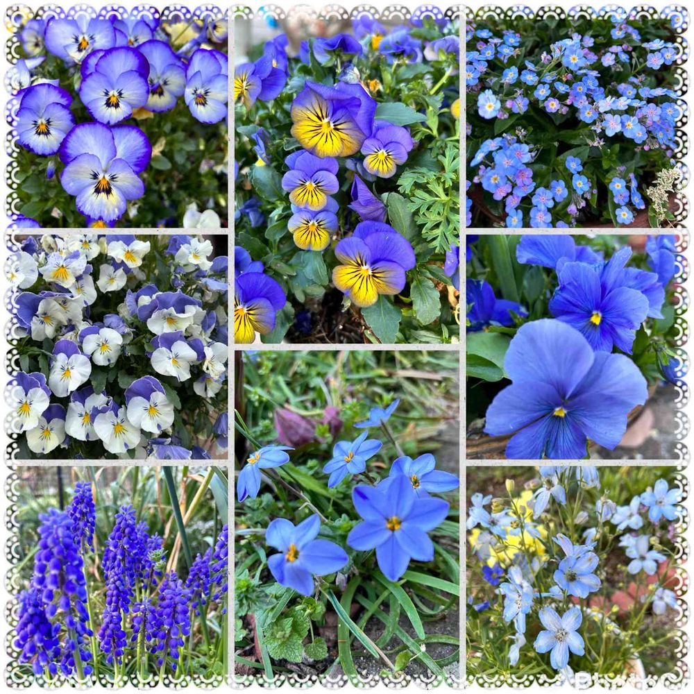 ハナニラにこんなに濃い青があるなんて、知りませんでした。青と白や青と黄色のビオラ、藤色のビオラが、美しいです。💙💟💙