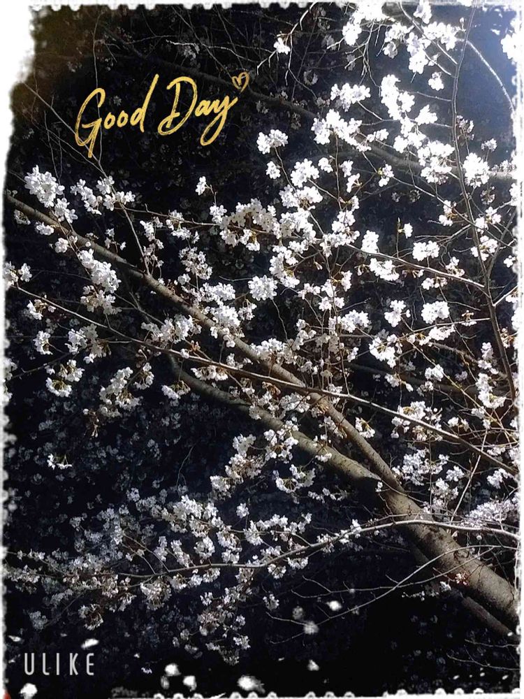 お勤め先の駐車場の桜、丁度ライトで照らされているんですね💕︎